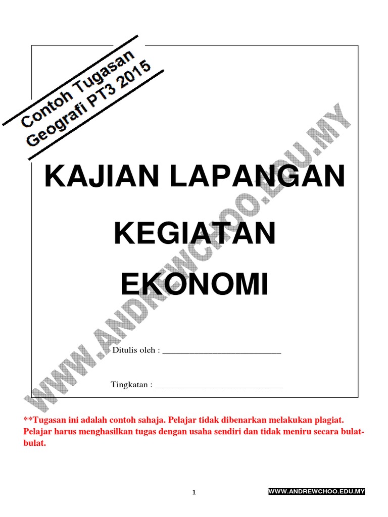 Kajian lapangan Kegiatan Ekonomi Tugasan Geografi PT3 2015 tersebut haruslah merangkumi. Contoh Kerja Kursus Geografi Sem 3 STPM. Borang temubual Soalan Kajian Guna Tanah.