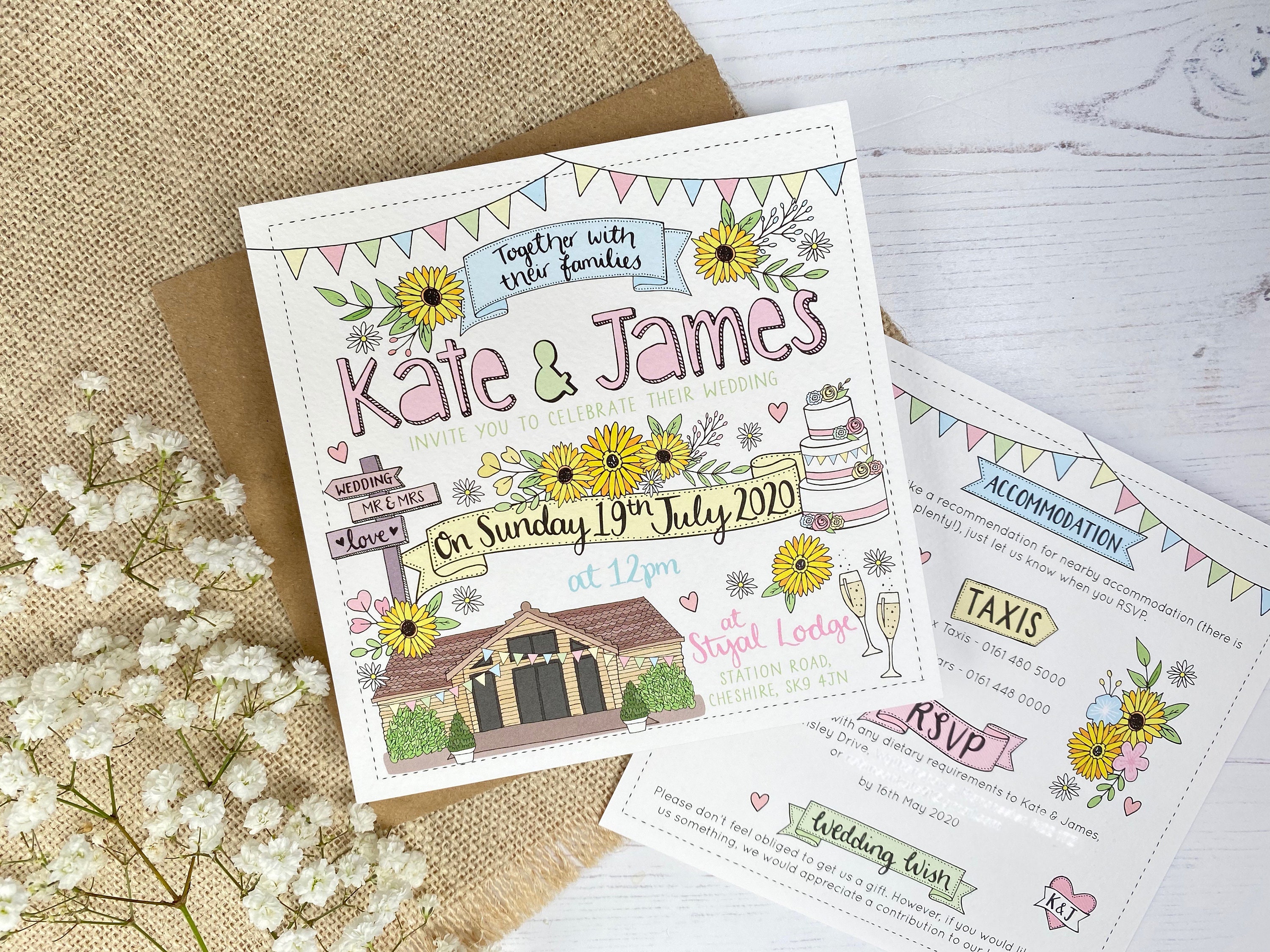 Personalised Hand Drawn Wedding Invitation Wedding Etsy