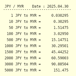 Convert Yen To Ringgits 1 Jpy Myr Exchange Rate Today